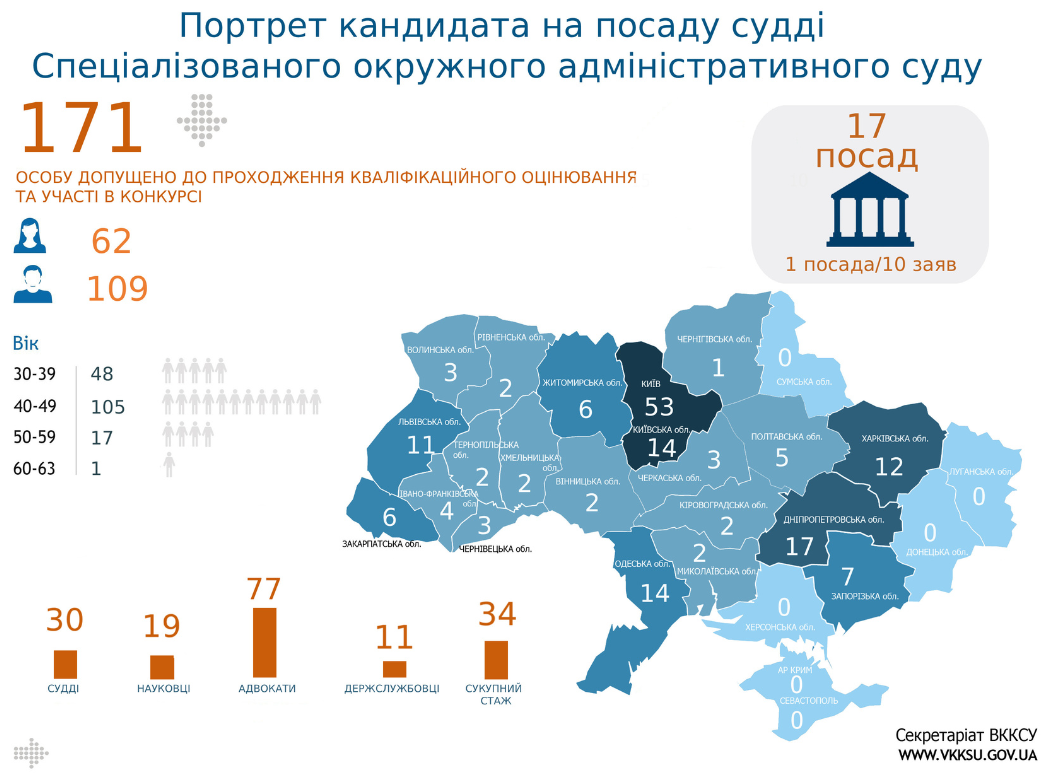 Допущено до проходження кваліфікаційного оцінювання та участі в конкурсі 171 кандидата на посаду судді СОАС. Відмовлено у допуску 54 кандидатам.